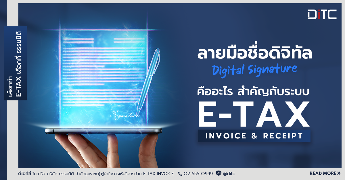 เมื่อพูดถึงการออก e-Tax Invoice & e-Receipt (ใบกำกับภาษีอิเล็กทรอนิกส์และใบรับอิเล็กทรอนิกส์) ลายมือชื่อดิจิทัล (Digital Signature) จะเป็นส่วนสำคัญที่ใช้ในการยืนยันว่า e-Tax Invoice & e-Receipt ที่ถูกสร้างขึ้นมาเป็นข้อมูลที่ถูกต้องและไม่ได้ถูกปลอมแปลง ทำให้การทำธุรกรรมทางการเงินดิจิทัลเป็นไปอย่างมั่นใจ