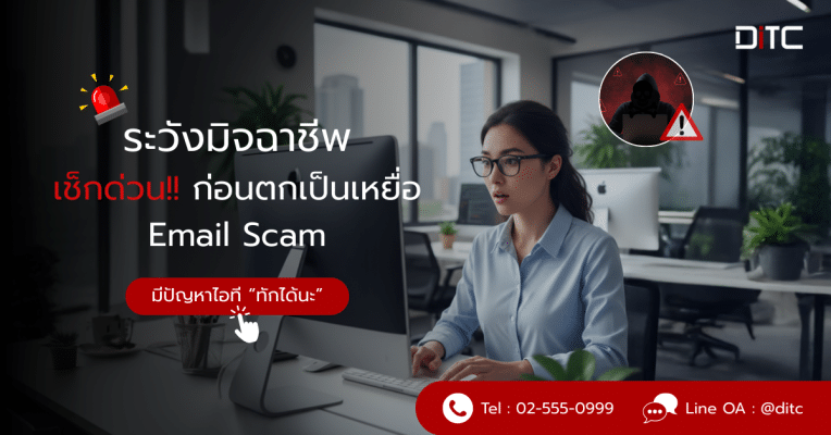หากท่านต้องการข้อมูลเพิ่มเติม หรือพบอีเมลที่น่าสงสัย สามารถติดต่อ บริษัท ดีไอทีซี จำกัด โทรศัพท์ 02-555-0999LINE ID : @ditc